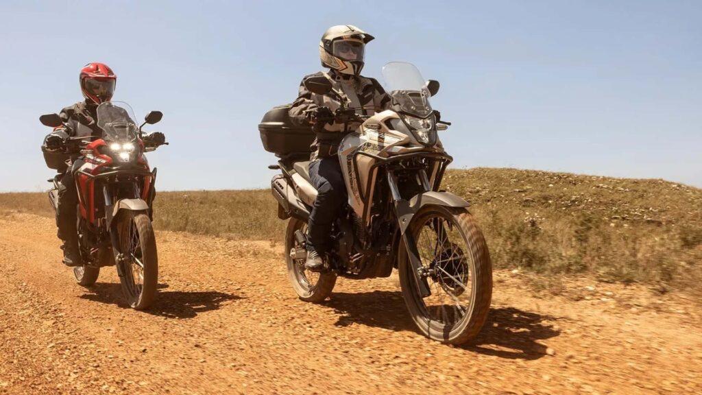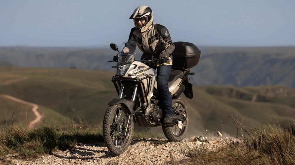 O chassi é novo mas rodas e pneus trazem as mesmas medidas da XRE com aro 21 na frente e 18 na traseira com pneus Metzeller Karoo Street. Os freios são a disco nas duas rodas com disco maior na dianteira e ABS de duplo canal.