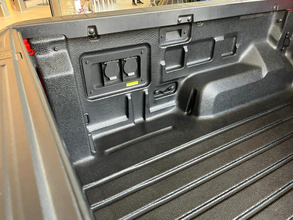 A capacidade de carga é mantida na Raptor porém há novos acessórios como os protetores Flexbed, tomada de 120v, pontos de ancoragem de carga e tampa de acesso nas laterais. A suspensão usa amortecedores Fox Live Shocks de 2,5”.