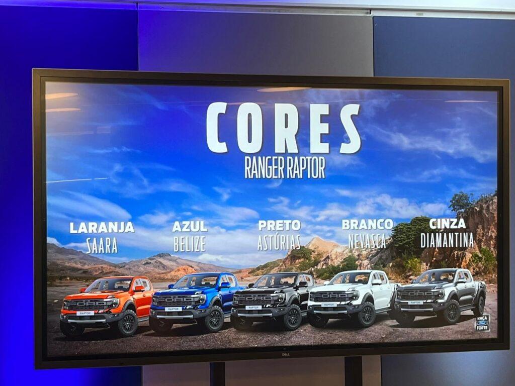 A Ranger Raptor chega nas cores Laranja Sahara, Azul Belize, Preto Astúrias, Branco Nevasca e Cinza Diamantina. As primeiras unidades da Ford Ranger Raptor serão entregues em fevereiro de 2024. O preço sugerido é de R$ 448,6 mil.