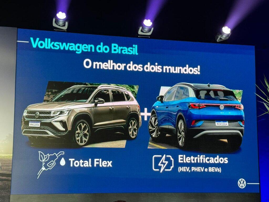 Assim como outras marca, a Volkswagen consolida a mudança no discurso sobre eletrificação. Até o meio de 2023, o discurso era em prol de carros 100% elétricos e agora marcas como a General Motors admitem que o caminho da eletrificação passa por carros híbridos. "Temos o total flex e agora teremos o carro híbrido flex com avançado pacote ADAS, nova arquitetura elétrica, novo câmbio. Como combinamos a estratégia global da companhia com a realidade do Brasil? Isso passa por soluções que teremos aqui no país e na América Latina", finalizou.