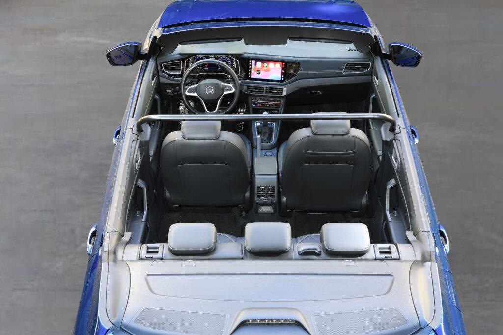 O Virtus Cabrio mescla elementos das versões Highline e Exclusive, recebeu a cor Azul Biscay que é perolizada, rodas de 18 polegadas com acabamento escuro, interior com bancos e forrações na cor preta e o motor 250 TSI de 150cv e 25kgfm de torque com câmbio automático de seis velocidades que teve a programação alteradada para circular de forma suave em baixas velocidades.