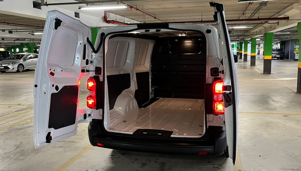 Usamos o e-Jumpy ao longo de uma semana intensa de transportes e demandas pela cidade. Durante a semana de avaliação, de uma mudança completa onde acomodamos inúmeros produtos (Incluindo um colchão “queen size”), a pequenos circuitos com produtos de menor porte. O acesso ao compartimento pode ser feito por meio das portas traseiras, que se abrem a 180° desencaixando os suportes das dobradiças. Existe, ainda, a porta corrediça lateral do lado direito, que torna o embarque e desembarque bastante práticos. A área volumétrica da Jumpy é de 6,1 m3 e carrega até 1.000 kg.