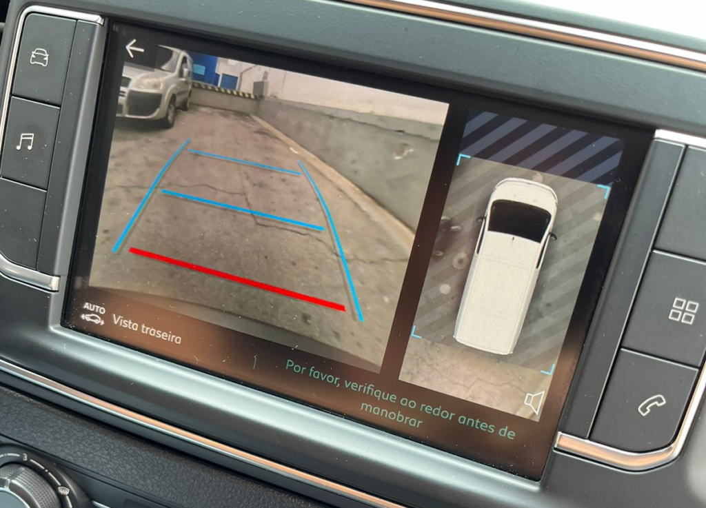 A manobrabilidade da e-Jumpy surpreendeu e não encontramos dificuldades para entrar, sair ou mesmo manobrar a Van em vagas de garagem ou rua. Os seus 5,02 m de comprimento exigem as vezes vagas mais longas o que não é comum em alguns estacionamentos. A ampla área envidraçada da cabine e o bom campo de visão dos espelhos retrovisores laterais são suficientes no dia a dia e a câmera de ré para realizar manobras de estacionamento ajudam de sobremaneira. Uma sugestão que faríamos seria ter no retrovisor central (nas vans fechadas como a que avaliamos) a instalação de uma tela transmitindo constantemente as imagens da câmera de ré.