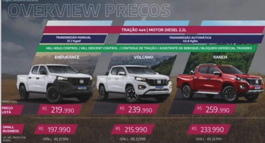 E quais os preços da pick-up para clientes com CNPJ? A rede já até divulgou os preços para clientes com CNPJ ou também “vendas diretas” (válido para portadores de CNPJ, microempresas e também produtor rural)
