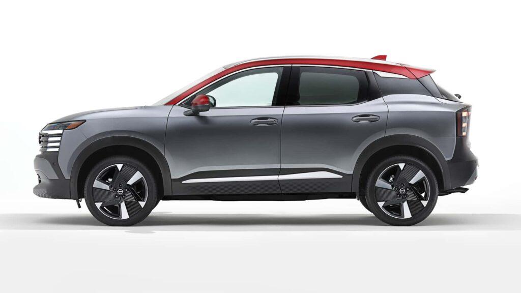 O Kicks ganha uma nova geração baseada na plataforma CMF-B já usada aqui pelo Renault Kardian e adota uma linguagem de design bem diferente com linhas horizontais na grade em efeito degradê. Nas laterais, linhas mais altas e um detalhe visual na coluna C.