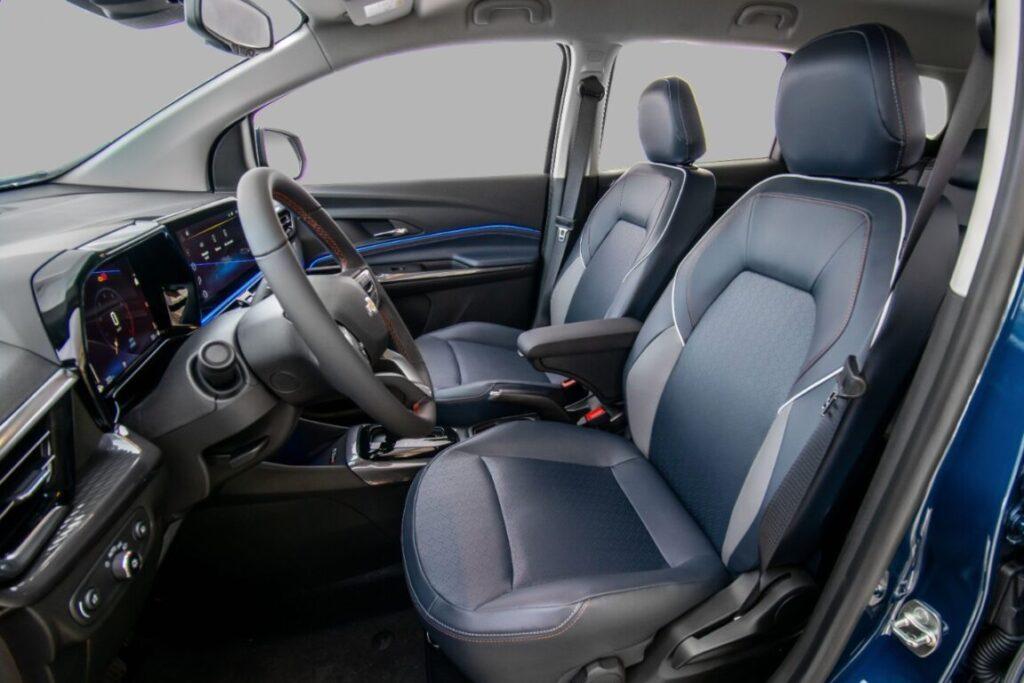 Por fim, a versão topo de linha Spin Premier traz alerta de colisão, alerta de saída de faixa, alerta de ponto cego, frenagem automática de emergência, indicador de distância do carro à frente, carregador por indução, bancos com revestimento premium, grade frontal com detalhes em cromados, rodas com acabamento usinado e rack de teto preto.