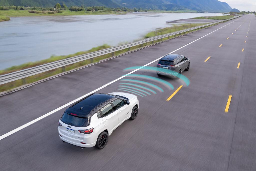 Outra novidade do Compass é a estreia do ADAS nível 2 que foi aprimorado no Brasil pela engenharia da Stellantis. No pacote ADAS há mecaniscmo centralizador do carro na faixa e detector de mãos fora do volante, detector de fadiga, detector de tráfego cruzado e outros itens.