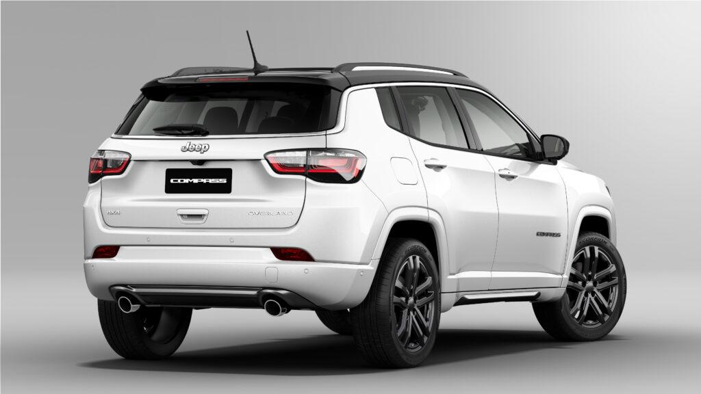 Nas versões topo - Overland e Hurricane - além do motor 2.0 turbo de 272cv há novidades no Compass como o "Performance pages" que mostra uso de potência e força G além do nível do turbocompressor no painel, atualização do Adventure Inteligence "plus", Alexa "Home to Vehicle" que integra comandos da casa à Alexa incorporada ao veículo, abertura de porta-malas com sensor de presença com acionamento pelos pés (antes era apenas elétrica por botão), bancos elétricos com memória e nas versões Blackhawk um visual diferenciado com apelo esportivo enquanto na Overland o perfil é mais tradicional.