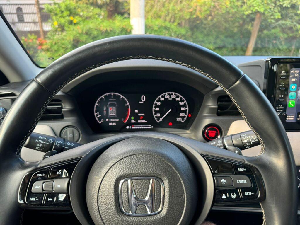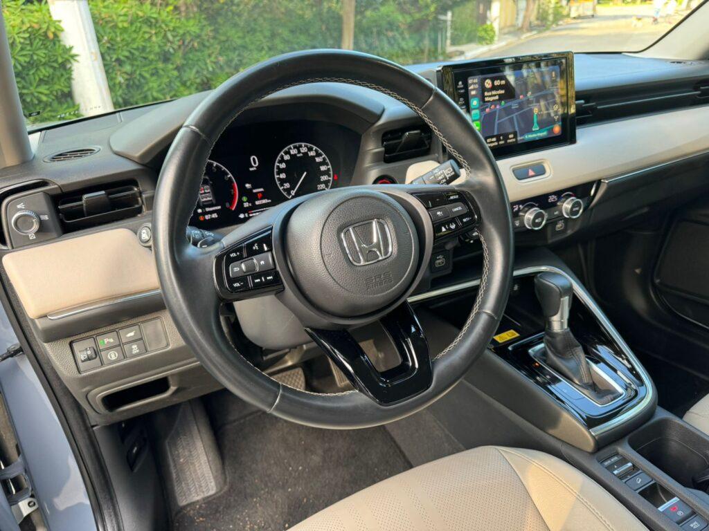 Outro ponto positivo é o nível de equipamentos. O HR-V Touring traz controle de cruzeiro adaptativo, que auxilia o motorista a manter uma distância segura em relação ao veículo à sua frente e manter uma velocidade ajustável por meio de botões no volante.