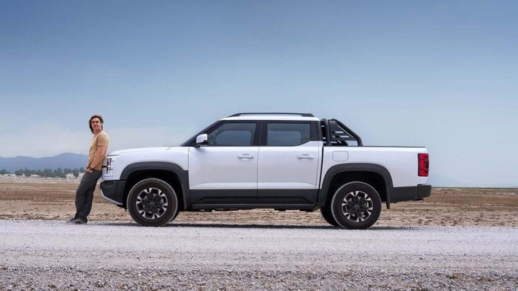 Na imagem publicada com algumas pessoas próximas ao veículo, podemos ver o perfil lateral da Shark por inteiro na traseira, com a tampa da caçamba aberta, podemos ver uma lanterna. A dianteira também não aparece assim como o interior mas no próprio convite a marca revela a silhueta visual dos farois em LED.