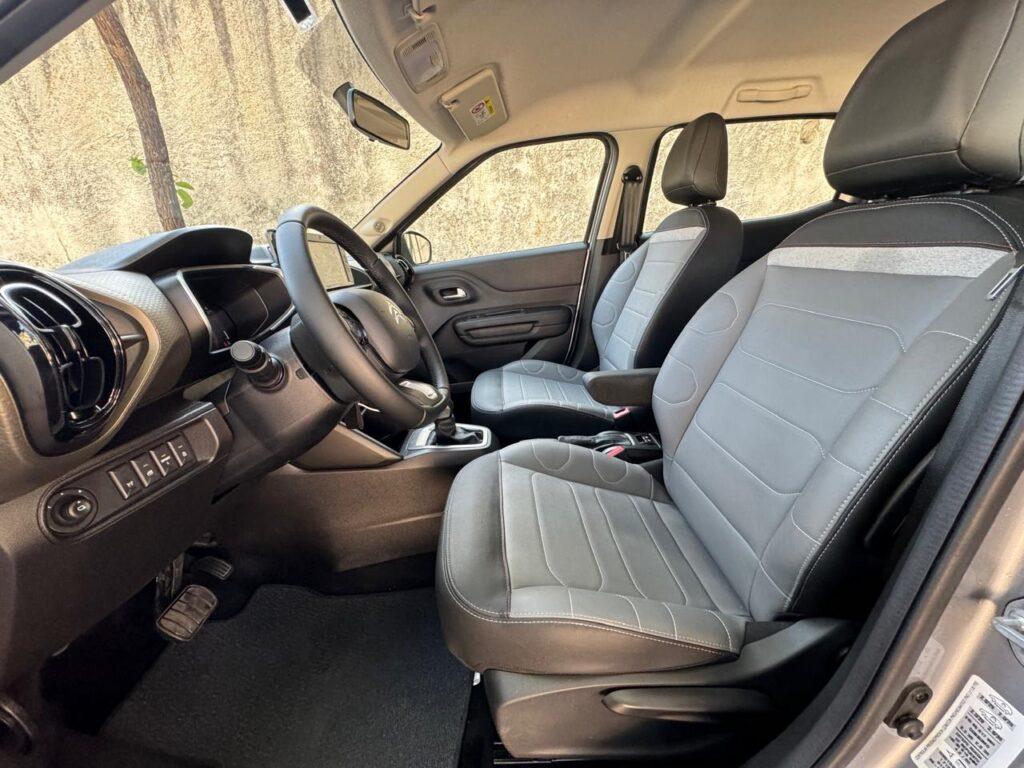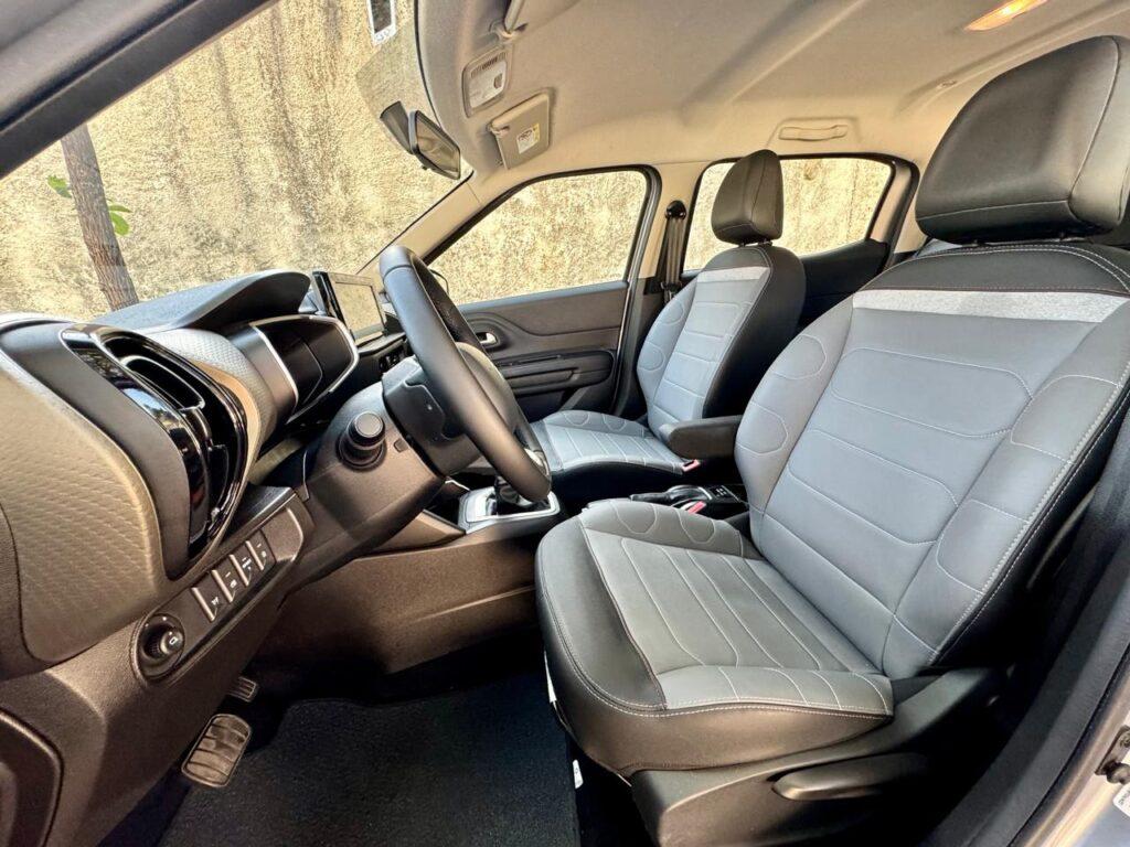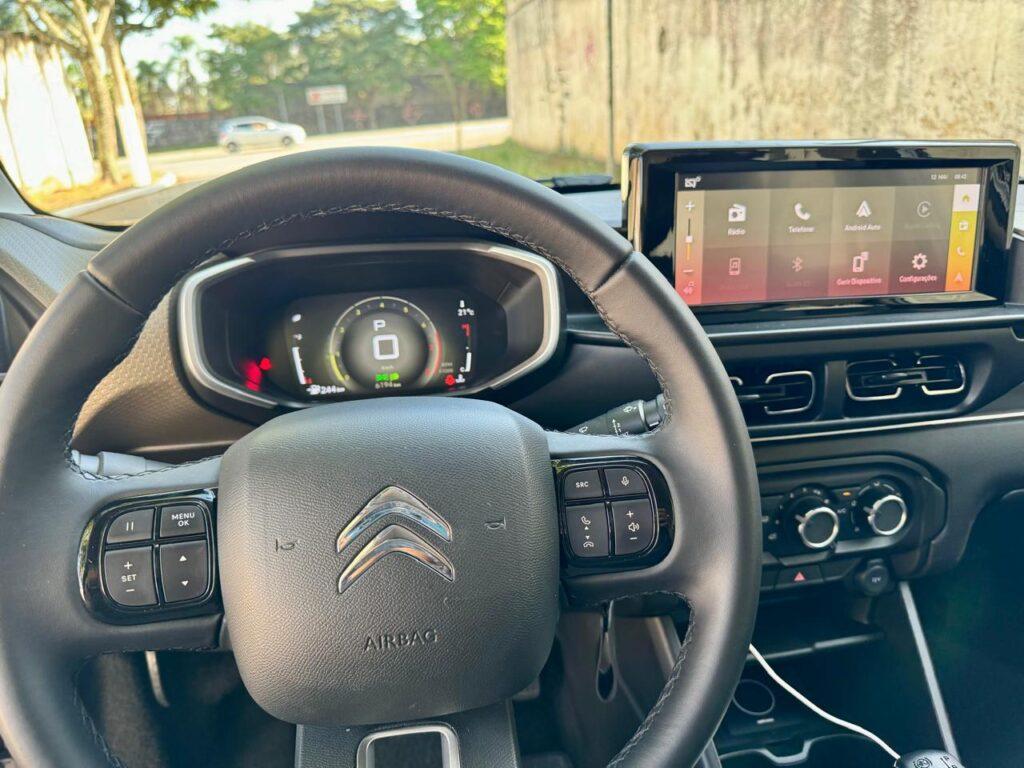 A central multimídia é de 10 polegadas com Android Auto e Apple CarPlay sem fio e na versão avaliada o Citroën C3 Aircross Shine contava com um carregador de celular por indução no painel. Os comandos do ar-condicionado são botões de fácil operação no centro do painel mas de aparência rústica e o volante é multifuncional e intuitivo, com ajuste apenas de altura, sem regulagem de profundidade da coluna de direção. O quadro de instrumentos é digital de 7 polegadas de boa leitura e contraste.