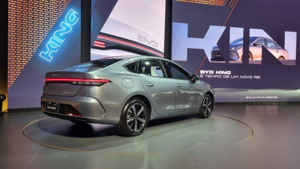 O BYD King traz um visual sóbrio, alinhado com os outros sedãs dessa categoria. Além disso, será vendido nas cores preta, branca e cinza. Por dentro, traz acabamento em dois tons nos bancos e painel, multimídia giratória de 12,8 polegadas com conexão com smartphone e painel de instrumentos de 8,8 polegadas.