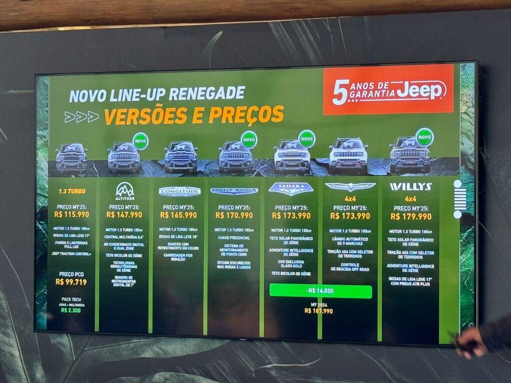 A maior estreia da linha 2025 do Jeep Renegade é a versão Sahara. "A marca tem um legado de 83 anos e virou sinônimo de uma categoria e traz consigo valores como liberdade, autenticidade, aventura e comunidade. (…) quando o Renegade foi lançado eram 5 concorrentes e hoje são 18", disse Hugo Domingues, vice-Presidente da Jeep para a América do Sul.