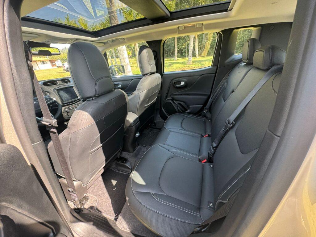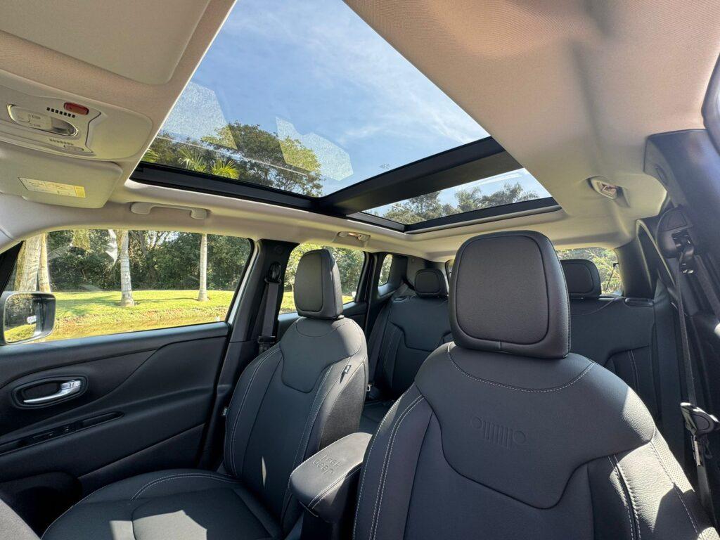 Rodamos em um trecho de estrada e um pequeno trecho de cascalho onde foi possível relembrar as virtudes do Renegade: motor potente com 185cv, bom acabamento e espaço de cabine e agora uma nova opção no segmento intermediária que tem teto solar panorâmico, algo que nenhum concorrente traz por esse preço de R$ 173,9 mil.