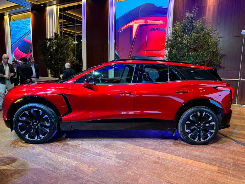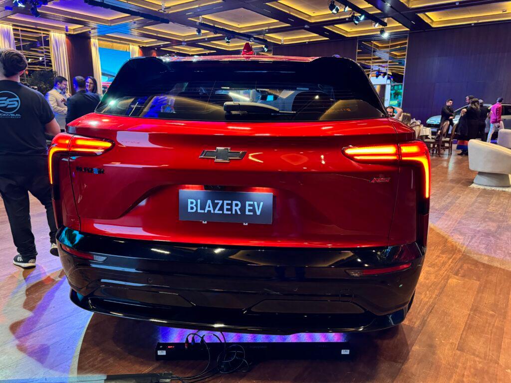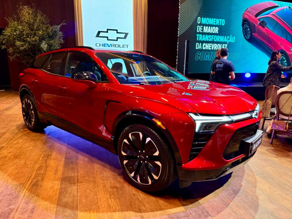 O Blazer EV estreia com motor elétrico de 347 cv e 44,9 kgfm de torque, com tração traseira. Com seu lançamento, o Blazer EV RS competirá com modelos como Volvo XC40 e C40, BMW iX3 e iX, além do BYD Tan, atualizado este ano.