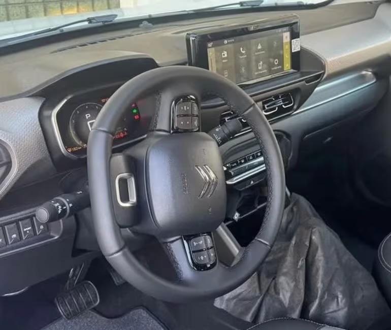 A versão flagrada nas imagens confirma que o carro terá na versão topo o painel digital do C3 Aircross, console elevado (na foto essa porção foi coberta por um plástico), controle de ar condicionado digital, chave canivete que estreou no C3 You! e seu desenho característico de SUV cupê.