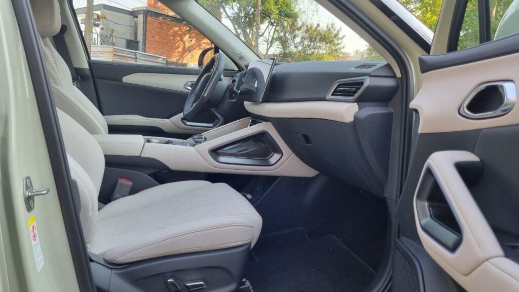 Por dentro, o novo SUV compacto traz o perfil do acabamento do Dolphin com diferenças em detalhes de saídas de ar e console elevado.