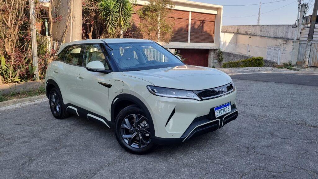 Nesse novo desenho nota-se a dianteira com amplas lanternas, para-choques com duplas entradas que estão nas laterais e se repetem na traseira além de lanternas unidas em uma só peça de forma entrelaçada como no Dolphin. Essa aliás é sua proposta: ser um SUV do Dolphin que é um dos elétricos mais populares do país (o outro é o Dolphin Mini da própria BYD).