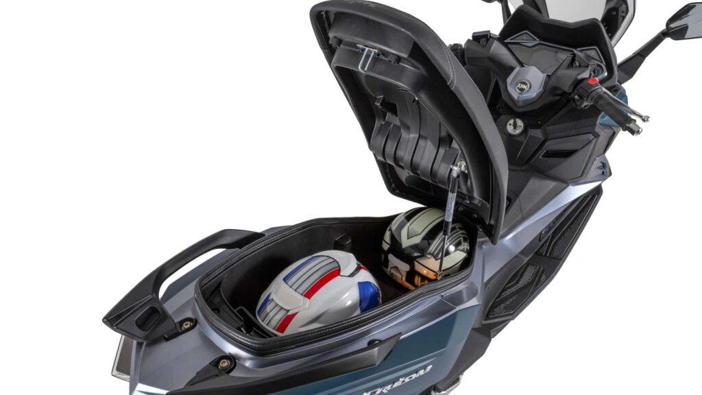 A scooter ganha novos faróis, pára-brisa acrílico mais amplo, tomadas USB e 12V, porta objetos mais amplo para dois capacetes entre outras novidades estéticas.