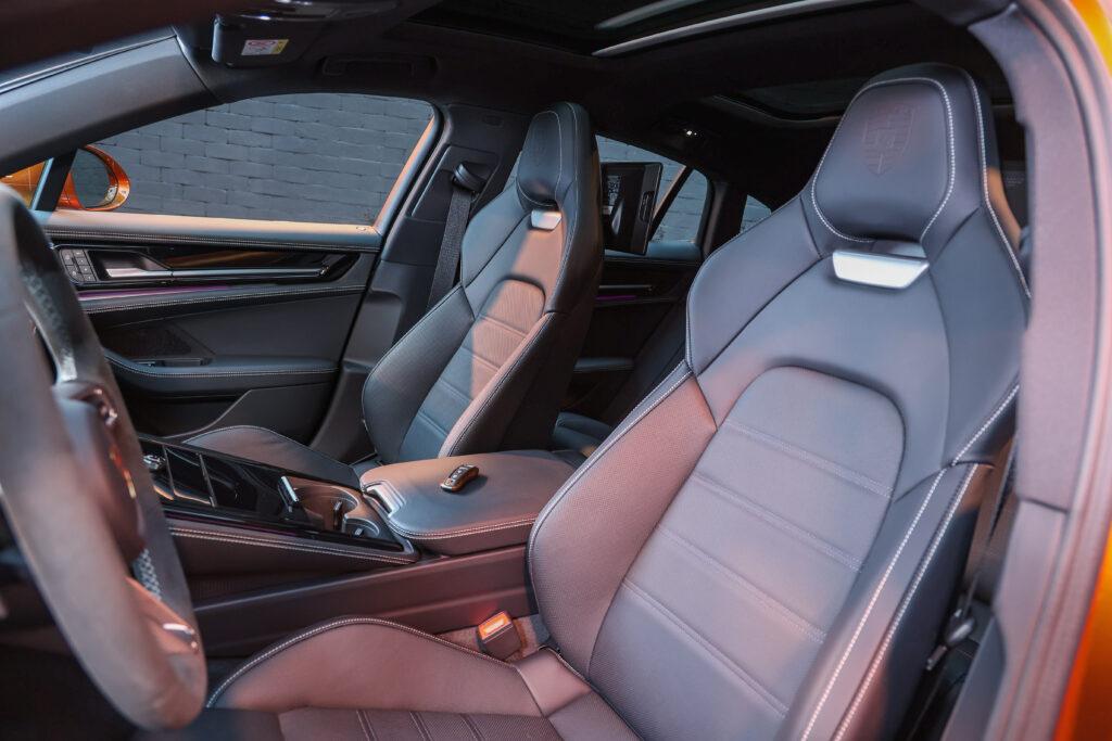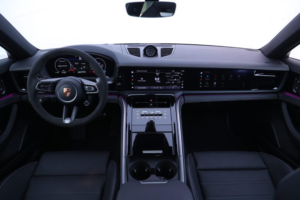 O interior é essencialmente o mesmo com suas três telas reunindo painel, multimídia e tela adicional para o passageiro. Por dentro o cockpit Porsche Driver Experience mantém a instrumentação analógica e digital com painel curvo de 12,6´´, alavanca seletora de marchas à direita do volante bem como novos comandos ao alcance do motorista. A central multimídia de 10,9 polegadas mantém os dados de desempenho e são customizáveis além do sistema de entretenimento e integração com Apple CarPlay e o Android Auto, compartimento refrigerado para carga de celular sem fio, função de recirculação de ar automática e controle e suspensão na tela.