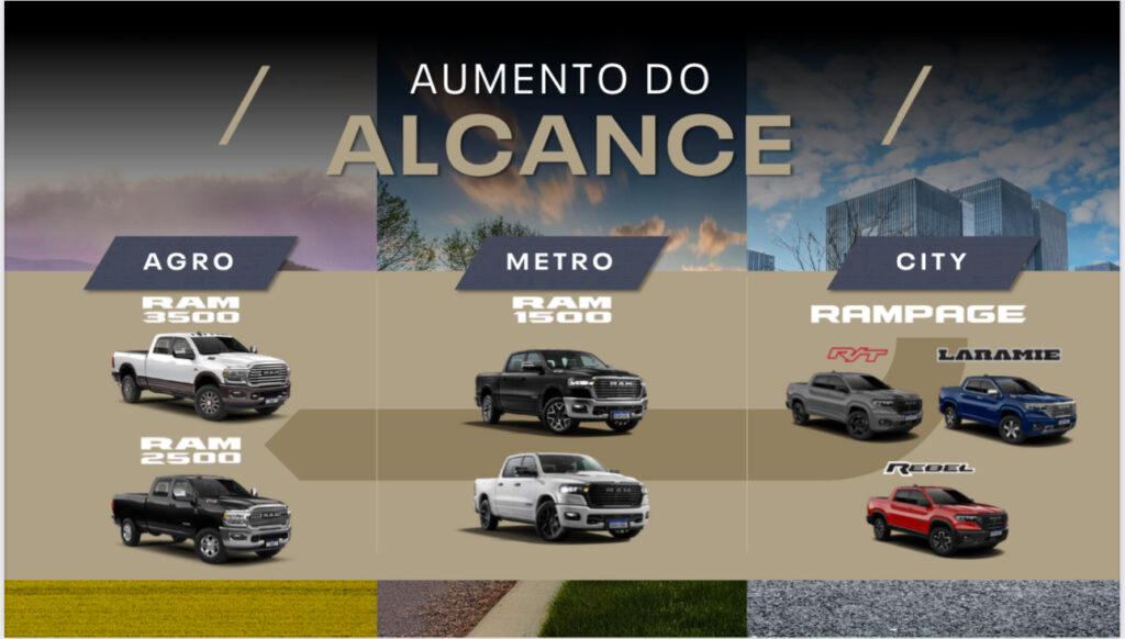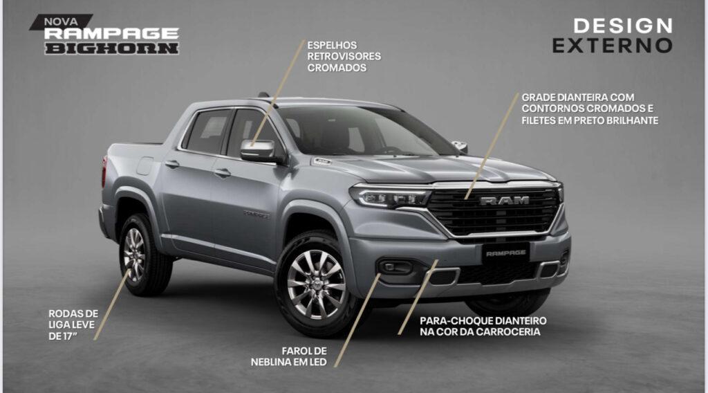 A grande novidade da Rampage é a estreia da linha Bighorn como versão de acesso. Com menos airbags, ACC e rodas simplificadas ela será o modelo mais barato do portfólio da Rampage mas ainda não teve o preço divulgado.
