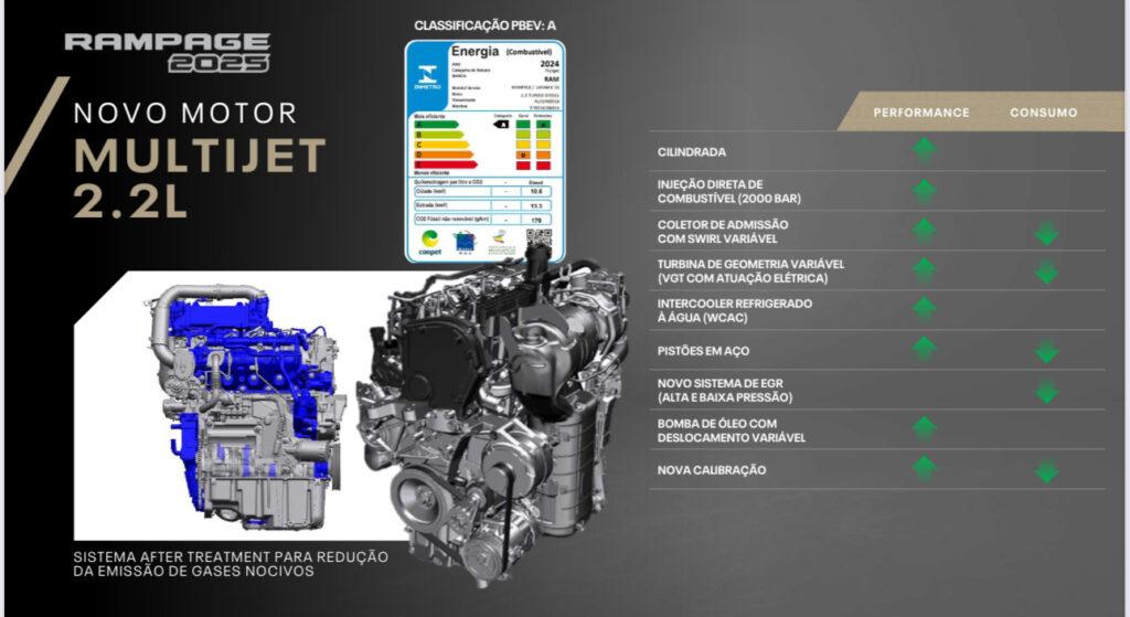 As versões diesel da Rampage trocam o motor 2.0 pelo 2.2 Multijet da mesma família do anterior.