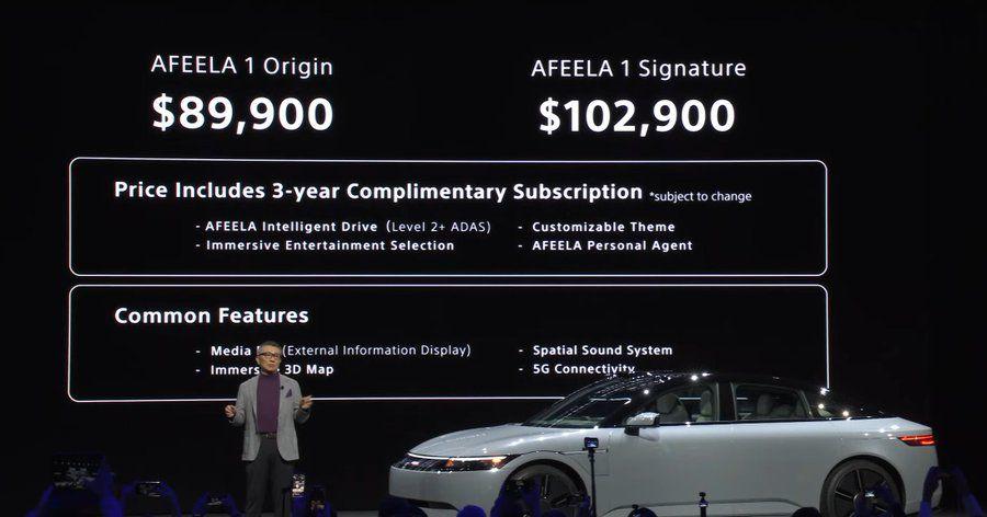 Porém o preço mostra que a Honda Sony Mobility não estão preocupados com um sucesso de escala do Afeela 1. O carro virá en duas versões com preço partindo de US$ 89.900, apenas US$ 5 mil abaixo de um Tesla equivalente. O valor corresponde a R$ 560 mil em valores convertidos.