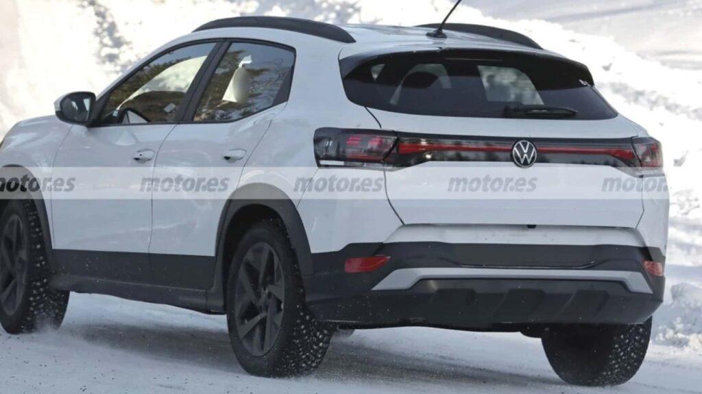 Também se destaca no modelo flagrado um rack de teto, a coluna "C" mais larga sugerindo um carro de perfil mais largo e a identidade traseira com lanternas unidas tais quais no Nivus e T-Cross As rodas devem ser de 16 ou 17 polegadas. Não há imagens do interior do crossover, que deve seguir a tendência da marca com uma central multimídia ao centro do painel como no T-Cross e painel digital parecido com o do Polo.
