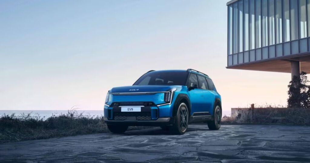 Com visual bem arrojado seguindo a linha dos modelos elétricos o Kia EV9 usa a nova plataforma E-GMP e soma dois propulsores elétricos com 385cv de potência e 71,4 kgfm de torque com tração integral.