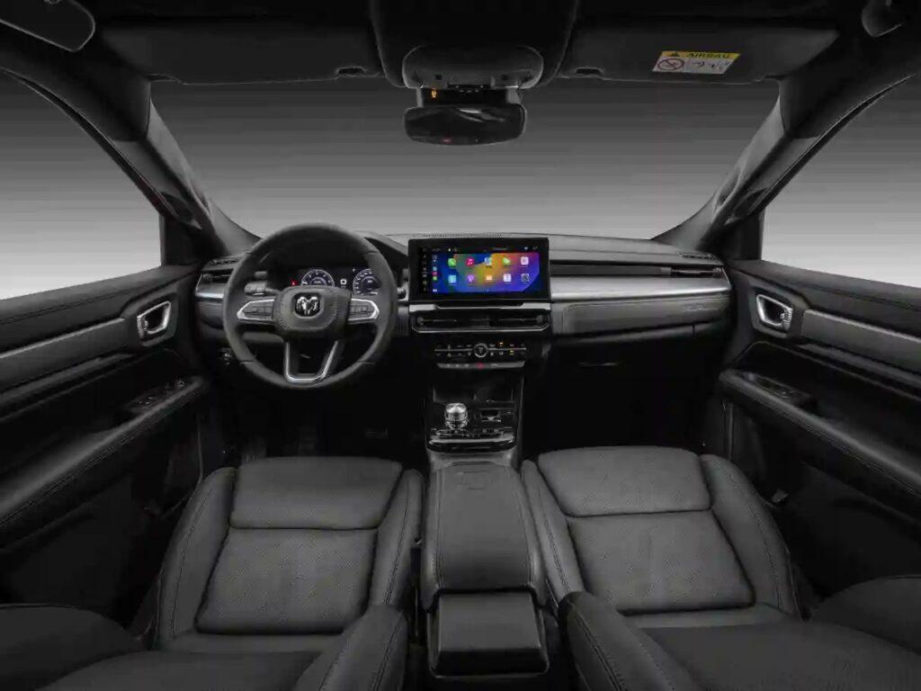 Por dentro a Rampage Laramie Night Edition tem bancos em couro preto, cor que se repete nos painéis de porta e de instrumentos substituindo o acabamento marrom da Laramie cromada. Além dos bancos e painéis, o revestimento das colunas e o forro de teto também são escurecidos.
