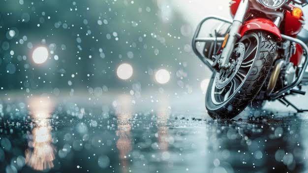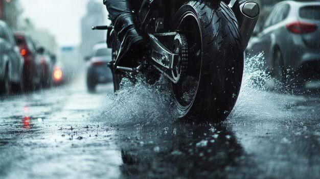 Condição dos pneus: Pneus com ranhuras profundas ajudam na drenagem da água e reduzem os riscos de aquaplanagem. Não ande com pneus carecas. Em scooters faça uma inspeção visual no pneu traseiro que pode estar gasto sem que o motociclista perceba.
