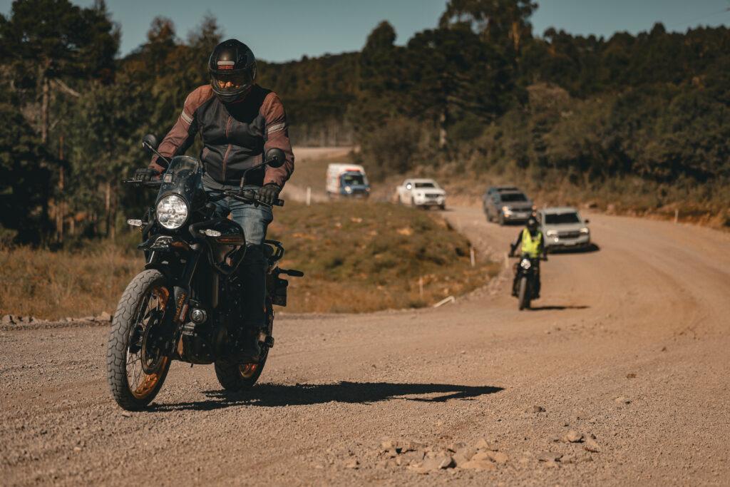 O teste proposto pela Royal Enfield teve mais de 80% do trecho composto por terra, cascalho, pedras alem de subidas e descidas pela região de Caxias do Sul onde estão os famosos cânions da região Sul do país. Partindo de Cambará do Sul ingressamos por um trecho de asfalto onde o fôlego do motor 450 fica muito evidente já a partir das 3.000rpm. A escala de marchas evolui de forma suave e o freio apesar de arisco é fácil de acostumar com destaque para o traseiro que é bem eficiente.