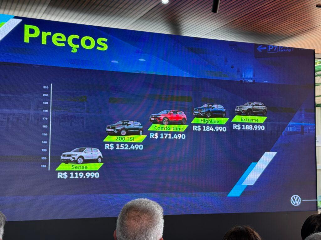 O T-Cross Extreme chega por R$ 188,9 mil, mas o pacote ADAS custa R$ 4.150 adicionais e o teto SKY View por R$ 7.550 e tem opções de cores especiais e o cinza Oliver por R$ 1.750. Somando estes dois itens o preço do T-Cross Extreme chega a R$ 202,9 mil.