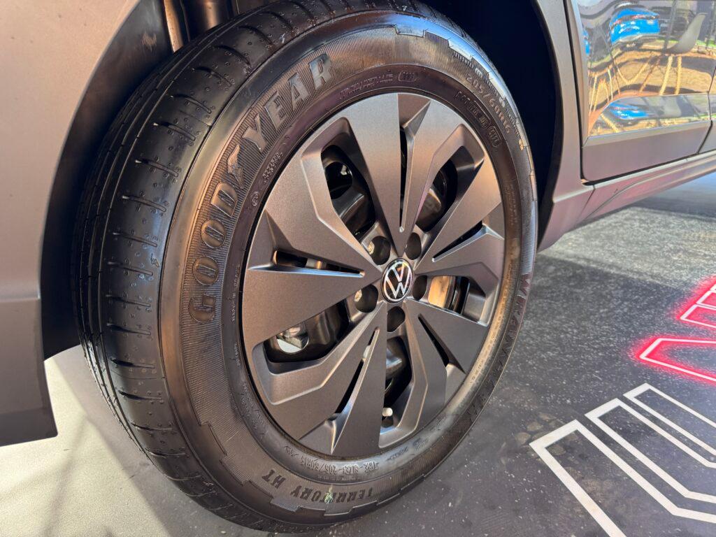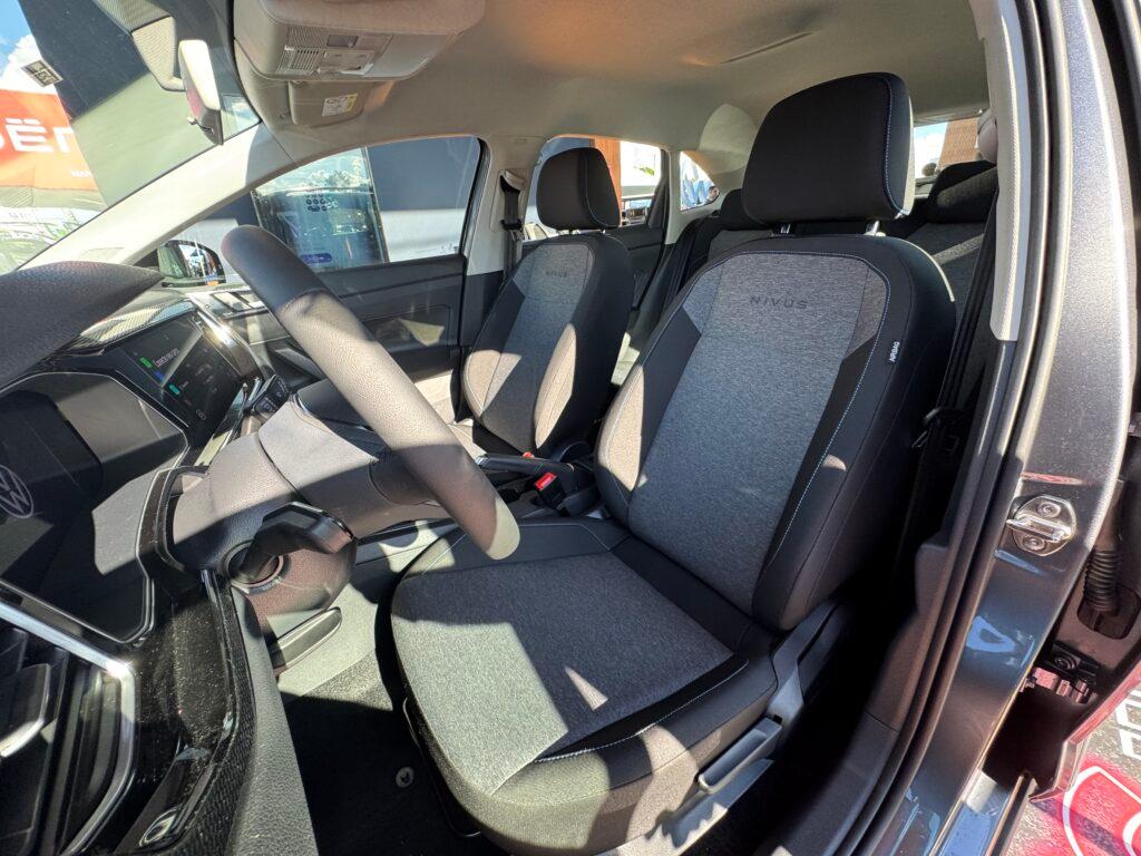 O Nivus Sense 2025 traz todos os detalhes visuais da reestilização com novos pára-choques, interior e rodas que no caso dessa versão são apenas calotas sobre rodas de aço aro 16.