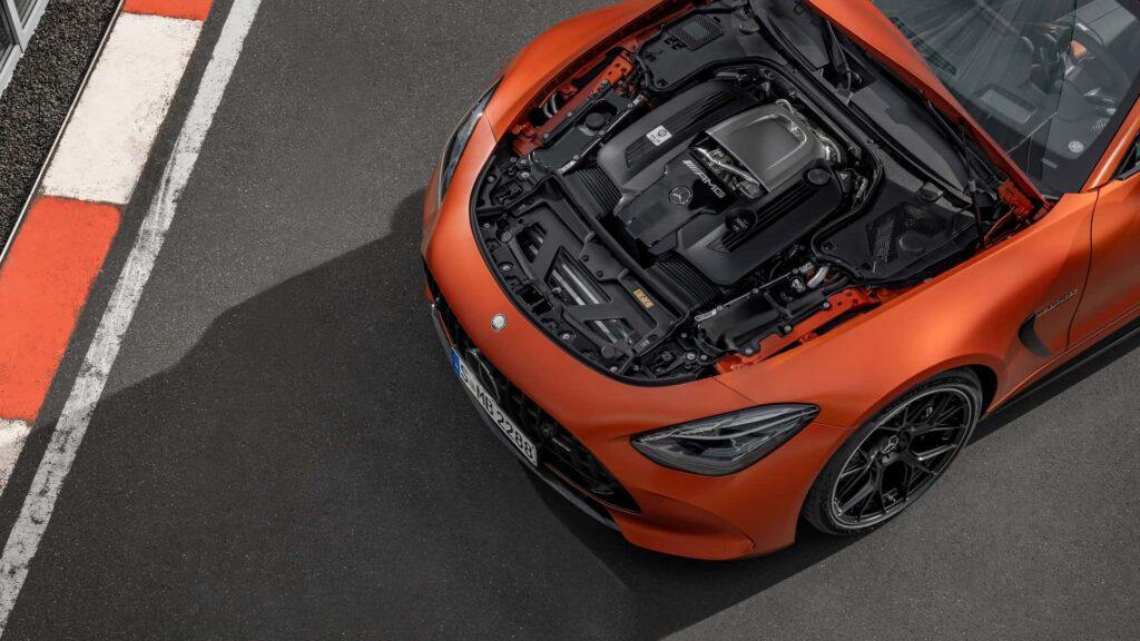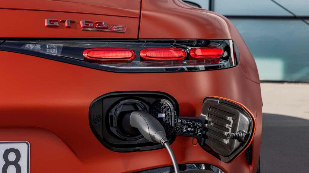 A Mercedes batiza o conjunto híbrido é batizado de “E Performance” e combina um motor V8 biturbo a combustão e outro elétrico traseiro no 2+2 combinado com sistema de tração integral variável AMG Performance 4MATIC+.