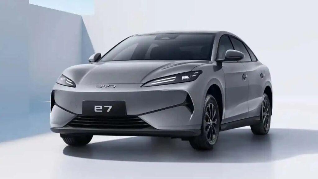 A BYD divugou as primeiras imagens do sedã médio elétrico e7. Com foco em táxis e veículos de aplicativo como o Didi (equivalente ao Uber na China), o e7 é um sedã médio com autonomia ampliada e preço mais em conta, embora ainda não tenha sido divulgado.
