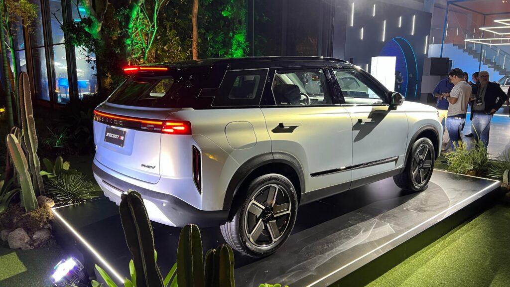 Já o Jaecoo 7, modelo híbrido, se destaca por seu design moderno e arrojado, refletindo uma estética