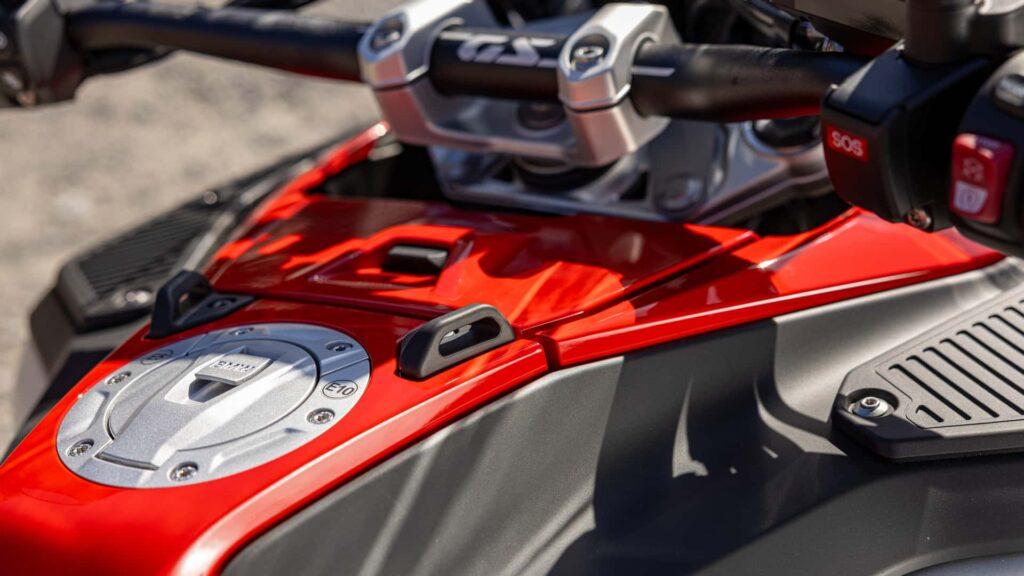 Já o sistema DSA é um controle dinâmico de suspensão para leituras rápidas do curso do amortecedor, molas e respostas para uma pilotagem mais assertiva em terrenos mais difíceis. A 1300 também traz quatro pré ajustes de suspensão que podem ser selecionados no painel digital: Rain (chuva), Road (estrada), Eco e Enduro.