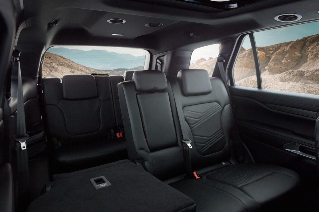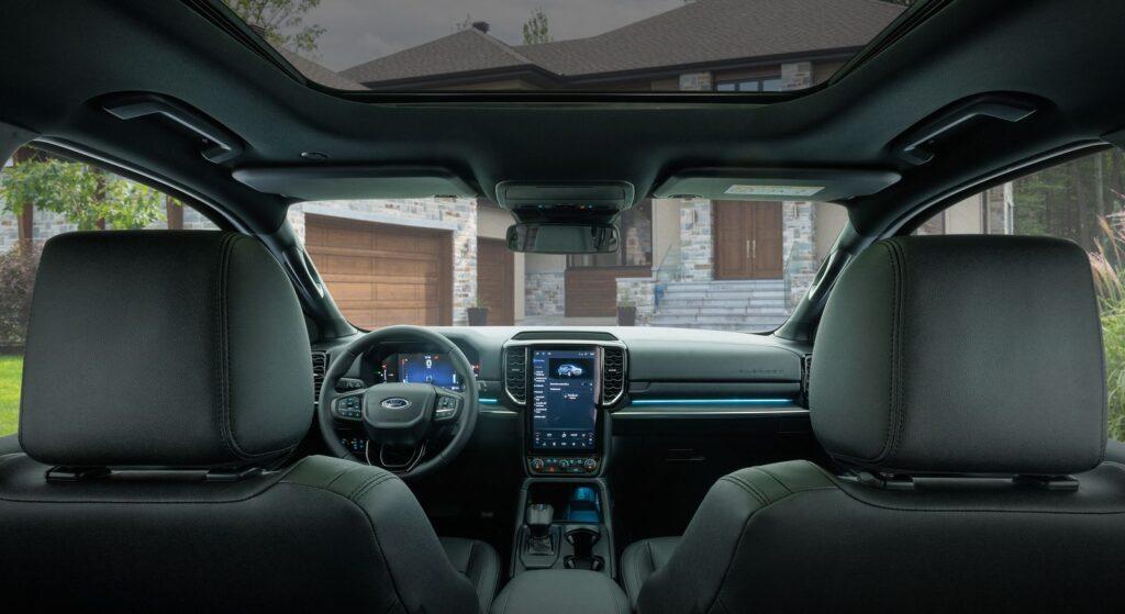 O painel quadrado com multimídia vertical seguem também a receita da Ranger. A lista de itens de série é farta com teto solar panorâmico, porta-malas com abertura elétrica, bancos rebatíveis da terceira fila sob o piso do porta-malas (7 lugares com espaço adequado), faróis e lanternas full-LED, e modos de condução, multimídia de 12 polegadas, painel digital de 8 polegadas e controle de modos de condução (Normal, Eco, Tow/Haul, Slippery, Sand e Mud/Ruts) também são itens de série bem como seis airbags e pacote ADAS completo.