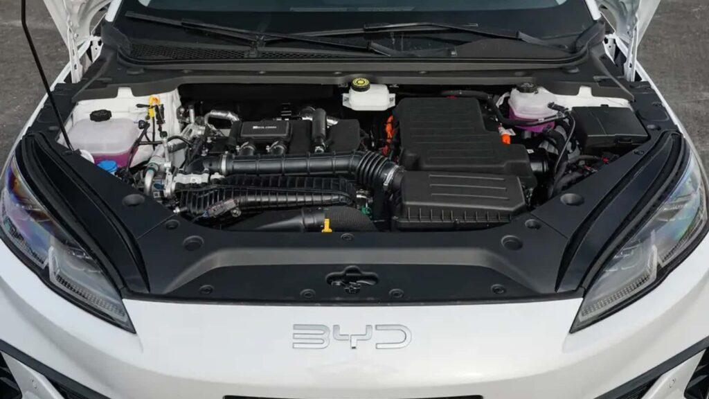 O motor do BYD Seal 06 DMi é o 1.5 quatro cilindros aspirado de 99cv combinado com motor elétrico de 161cv e baterias de 10,8kwh com autonomia elétrica de 80km e também outra versão com 215cv no motor elétrico e 15,8kwh de bateria para rodar até 150km no modo elétrico.