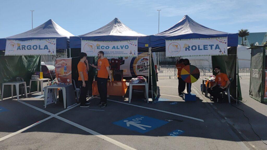 Todas as tendas de atrações juninas foram fruto de uma parceria com o Lar Sírio. No palco, música com um trio de sanfoneiros deu o tom do evento que foi além do tempo de duração da feira e terminou só 15h.