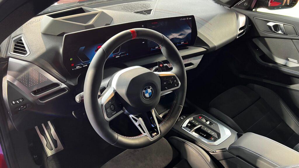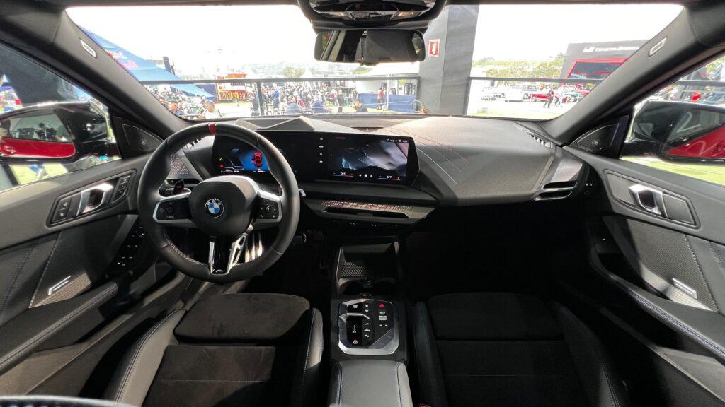 No interior, os bancos têm novo visual, o volante M em couro (com marcação de 12h no M235), acabamentos em alumínio iluminado e o BMW Curved Display com telas de 10,25 polegadas para o painel de instrumentos e 10,7 polegadas para a central multimídia. O seletor de marchas tem novo formato.