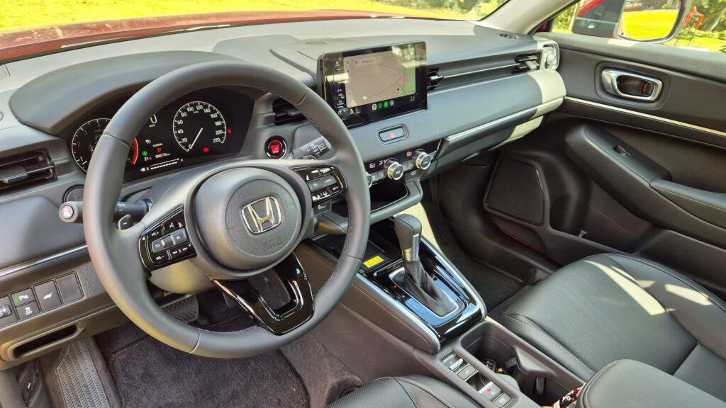 HR-V EXL – R$ 170.900: Além dos equipamentos da opção de entrada, essa configuração traz, faróis de neblina, apoio de braço traseiro, rodas de 17 polegadas, tweeters, bancos de couro, retrovisores eletrocrômico, retrovisores com auto tilt, ar-condicionado dual zone, sensor de estacionamento dianteiro, Honda Sensing, entre outros itens,