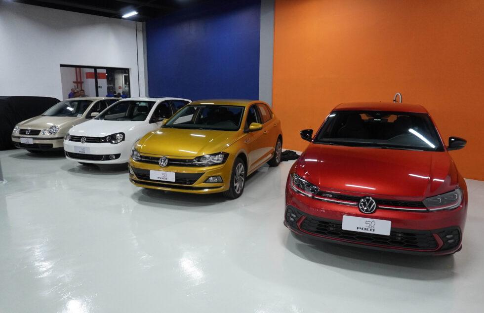 Entre os exemplares expostos estão o Polo 2002, o primeiro produzido no Brasil; um Polo Highline 2017 na cor amarelo cúrcuma, representando a geração anterior; e um Polo GTS, que integrou a frota de imprensa da marca em seu lançamento.