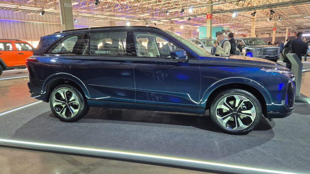Como SUV grande, o Wey 07 tem design limpo com faróis bem afilados, iluminação auxiliar em formato de bumerangue e maçanetas embutidas nas portas, molduras cromadas nas janelas e boa área envidraçada.