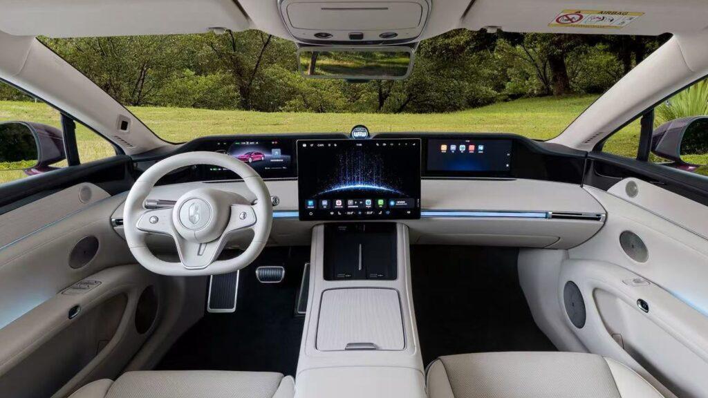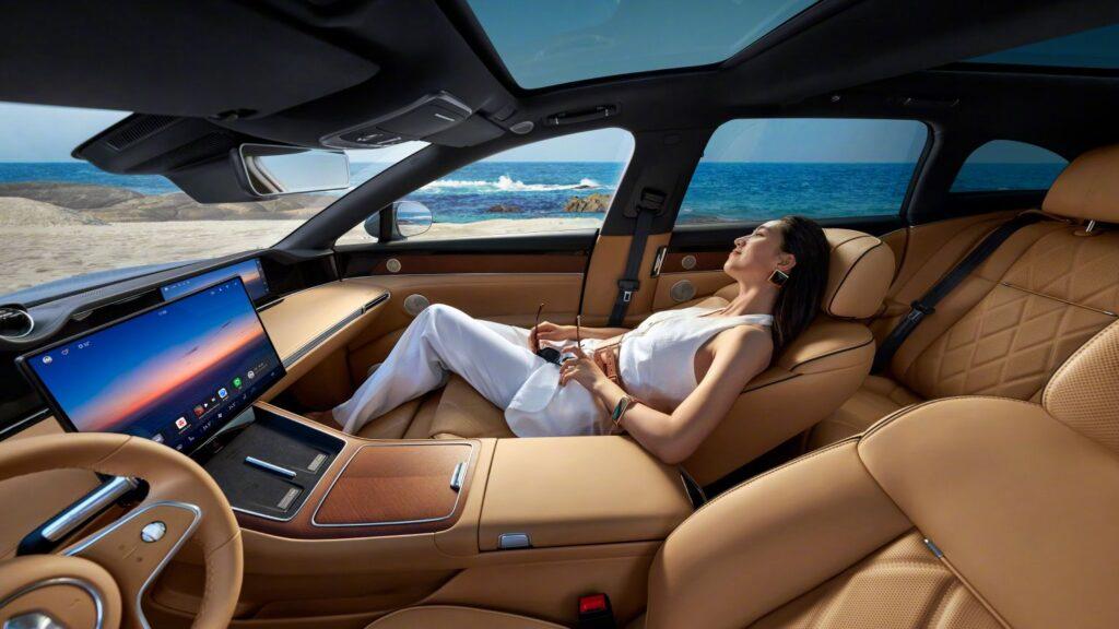 Há ainda opcional de projetor de 32 polegadas para os ocupantes traseiros, sistema de som Huawei Sound com 25 alto-falantes, refrigerador e porta-malas de 660 litros.