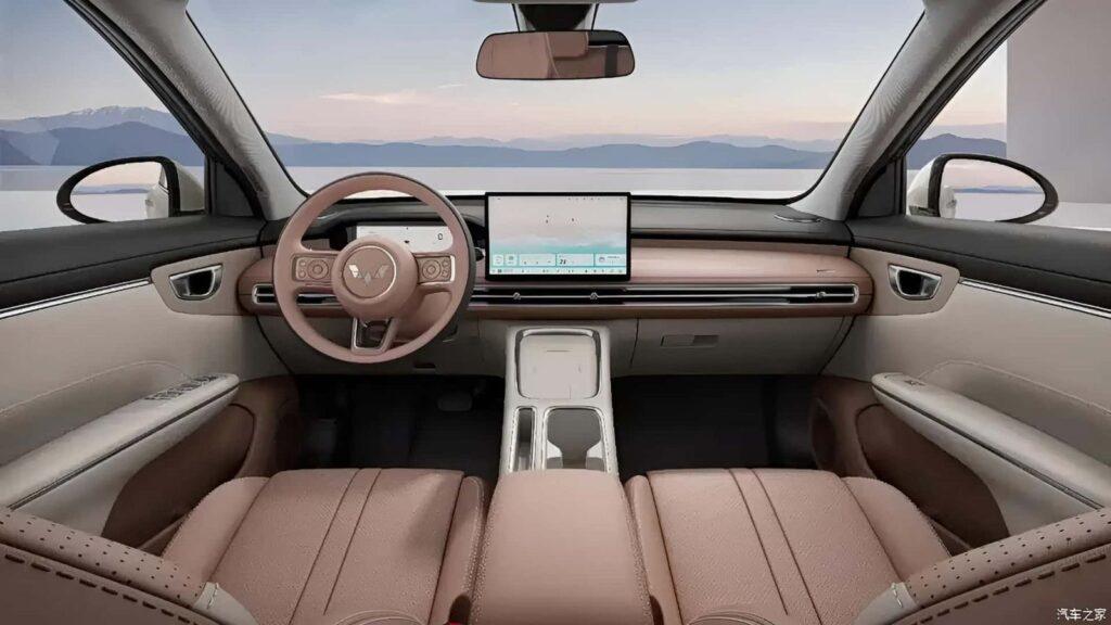 No interior, a Wuling adota uma fórmula comum dos carros chineses: painel digital de 8,8”, a central multimídia de 12,8”, o volante multifuncional de três raios, revestimentos em couro e detalhes em madeira 3D. O modelo oferece duas opções de cores internas, 25 compartimentos de armazenamento e porta-malas de 1.450 litros com os bancos traseiros rebatidos.