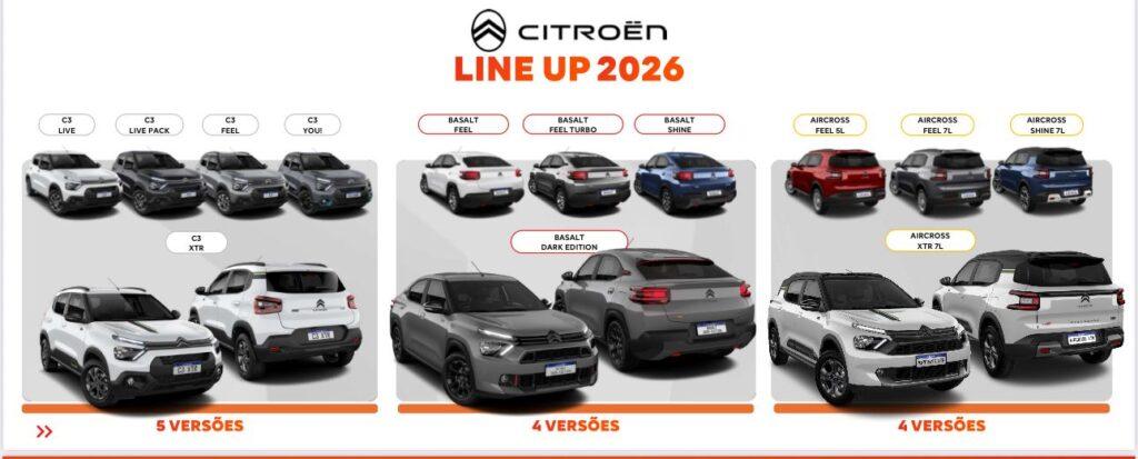 Citroën C3, Aircross e Basalt 2026: confira os preços e versões de toda a linha