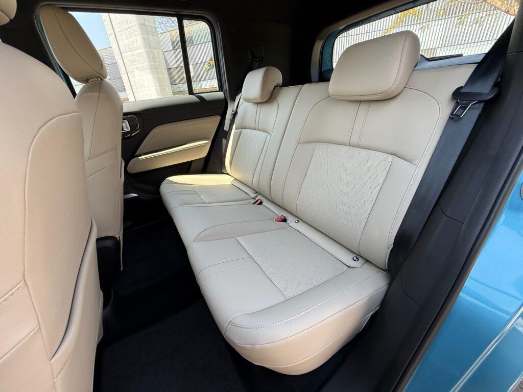 O espaço interno é bem aproveitado, e o acabamento surpreende: revestimentos em couro inclusive nas portas traseiras, luzes internas em LED e apoios de mão para passageiros. Ainda assim, há pontos a melhorar, como o único conector USB-A, ausência de console central com porta-objetos e a falta de teto solar.