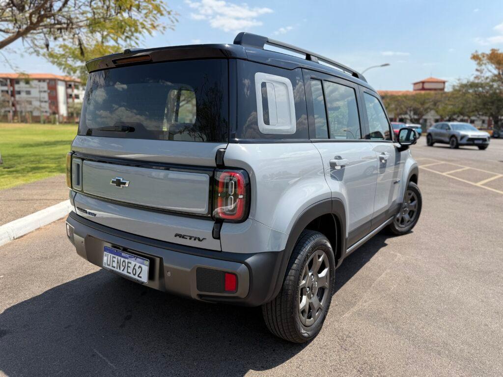 O Spark EUV aposta em um visual SUV de linhas quadradas, com aspecto “boxy” e logo escurecido da GM. Embora compacto, oferece boa sensação de espaço interno.